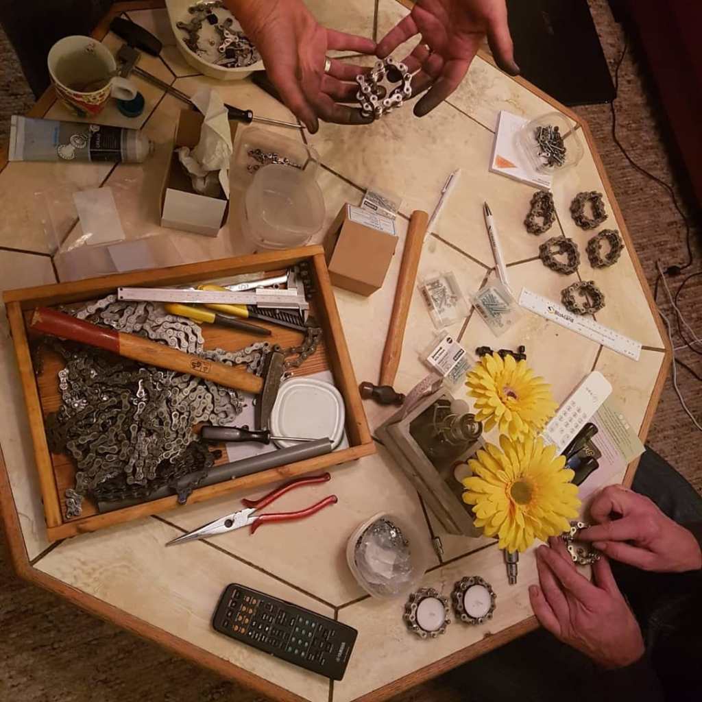 Van oude racefietskettingen maak ik de zogenaamde kettingkaarsjes. (waxinelichthouders) En inmiddels maak ik ook van oude cassettes en tandwielen kerstbomen. Verder ook nog klokken, kaarsenstandaards en kunst op planken. Ik maak het uit hobby maar ook om de machteloosheid van de ziekte kanker tegen te gaan. Mijn opbrengst gaat naar het project waar we ook voor zingen met het Inspire2livechoir.